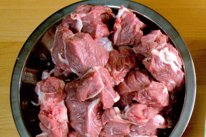 - Cut the beef into 4 cm squares. Avoid cutting the beef too small, as it can break into smaller pieces during cooking.