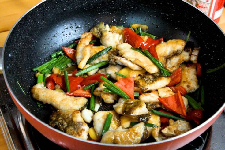 - Choice of fish. The main ingredient of this dish is, of course, fresh fish. We use sea bass, tilapia, barramundi, or any other type of fish with fewer bones and suitable for slicing into fillets. However, the Chinese style typically does not use whole fillets. Instead, the fish is cut into smaller pieces for stir-frying or pan-frying.