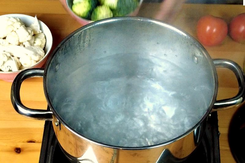 2. Fill a large stockpot with water and bring it to a rolling boil over high heat. Use at least a gallon of water for every pound of vegetables. If you prefer not to measure precisely, use enough water at least three times the volume of the vegetables.