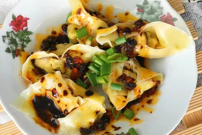 Szechuan spicy wonton (红油抄手) is traditional Szechuan street food. It is spicy and savory thanks to the combination of a myriad of herbs and spices in its unique dipping sauce. The sophisticated flavor of this wonton has earned Szechuan wonton an indisputable place on the Szechuan restaurant menu.
