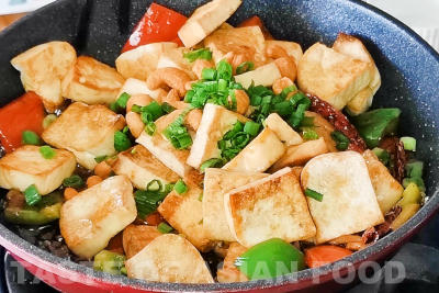 Kung Pao tofu (宫保豆腐) is an improvised dish from the famous Szechuan cuisine Kung Pao chicken. It is an excellent vegetarian dish for those who do not eat meat but want to appreciate the same flavor of the famed Kung Pao chicken.