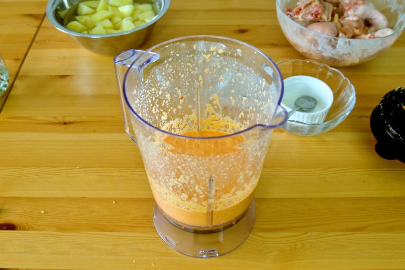 - Curry paste. I made a curry paste using an electric blender by blending chopped onion, red chili, and ginger with vegetable oil. I didn’t need to add water because the oil acted as the medium for blending.