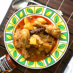 If you intend to eat it a day later, you can cook the chicken alone without the potatoes. Let the chicken cool down and store it in the chiller (or freezer if you intend to keep it longer). When you want to serve, cook the potatoes in a pot of water until they are tender. Drain the potatoes, add them to the chicken curry and cook for another five minutes until the potatoes absorb the flavor of the curry.