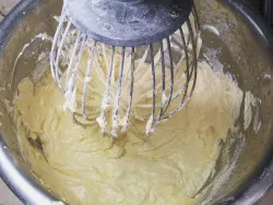 - Add the sugar into the mixer, start creaming the butter and sugar at high speed until it becomes fluffy and light.