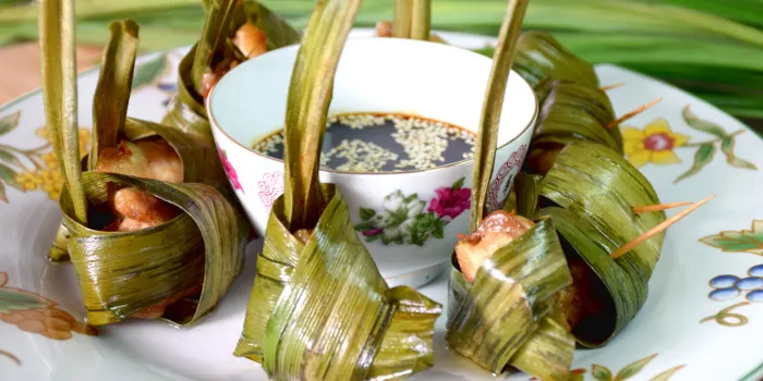 The Thai people wrap the marinated boneless chicken meat inside a large piece of pandan leaf and deep-fry it. The amazing aroma of the leaves is infused into the chicken meat, giving the ordinary chicken a distinct flavor and unique presentation.