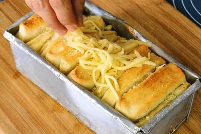 Pull apart garlic bread with an incredible texture that can hand-peel into paper-thin layers. It is an Asian style bread with cheese topping.