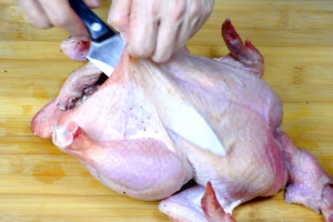 Tips 2: Carefully separate skin from breast meat by inserting fingers of a small knife