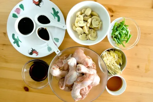 You only need chicken and nothing else for a basic version of sesame oil chicken. However, to add some variation to this sesame oil chicken recipe, consider adding black fungus (木耳/wood ear fungus), goji berries, and mushrooms. Dry shitake mushrooms or canned button mushrooms are good options.