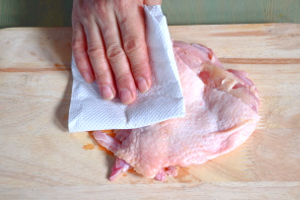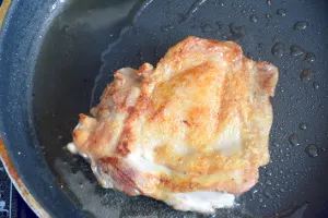 If you want to have crispy chicken skin, be sure not to moisten the skin with the sauce while cooking.