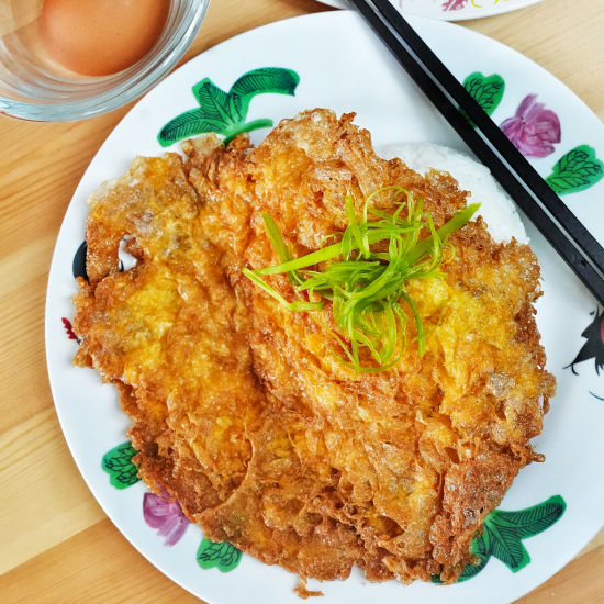There are only two ingredients required, egg and fish sauce, but it is insanely delicious. It is all because of frying the egg with plenty of oil until the edges turn crispy.