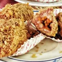 Fried yong tau foo is best served with a sauce drizzled on top. One of the most popular sauces is called sweet sauce (甜酱), which is also famous for serving with the local chee cheong fun 肠粉. Other variations are the fermented black bean paste (豆豉酱) and fermented yellow bean paste (豆醬/taucu), which is made with soybeans.